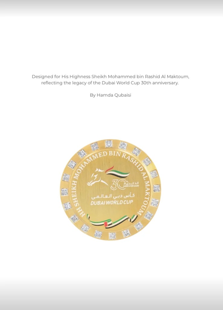 Dubai: Emirati designer Hamda Qubaisi was recently commissioned to create a bespoke commemorative gold badge marking the 30th anniversary of the Dubai World Cup, in honour of His Highness Sheikh Mohammed bin Rashid Al Maktoum, the Vice President and Prime Minister of the UAE and Ruler of Dubai.