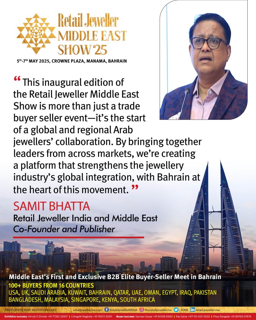 “This inaugural edition of the Retail Jeweller Middle East Show is more than just a trade buyer-seller event—it’s the start of a global and regional Arab jewellers’ collaboration,” said Samit Bhatta, Co-Founder and Publisher, Retail Jeweller India and Middle East. “By bringing together leaders from across markets, we’re creating a platform that strengthens the jewellery industry’s global integration, with Bahrain at the heart of this movement.”