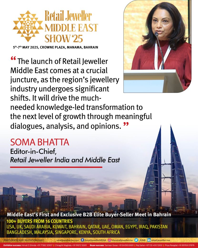 “The Retail Jeweller Middle East Show marks a pivotal moment for the region, bringing together global and regional buyers with Bahraini, UAE and Indian manufacturers,” stated Soma Bhatta, Publisher & Editor, Retail Jeweller India and Middle East.