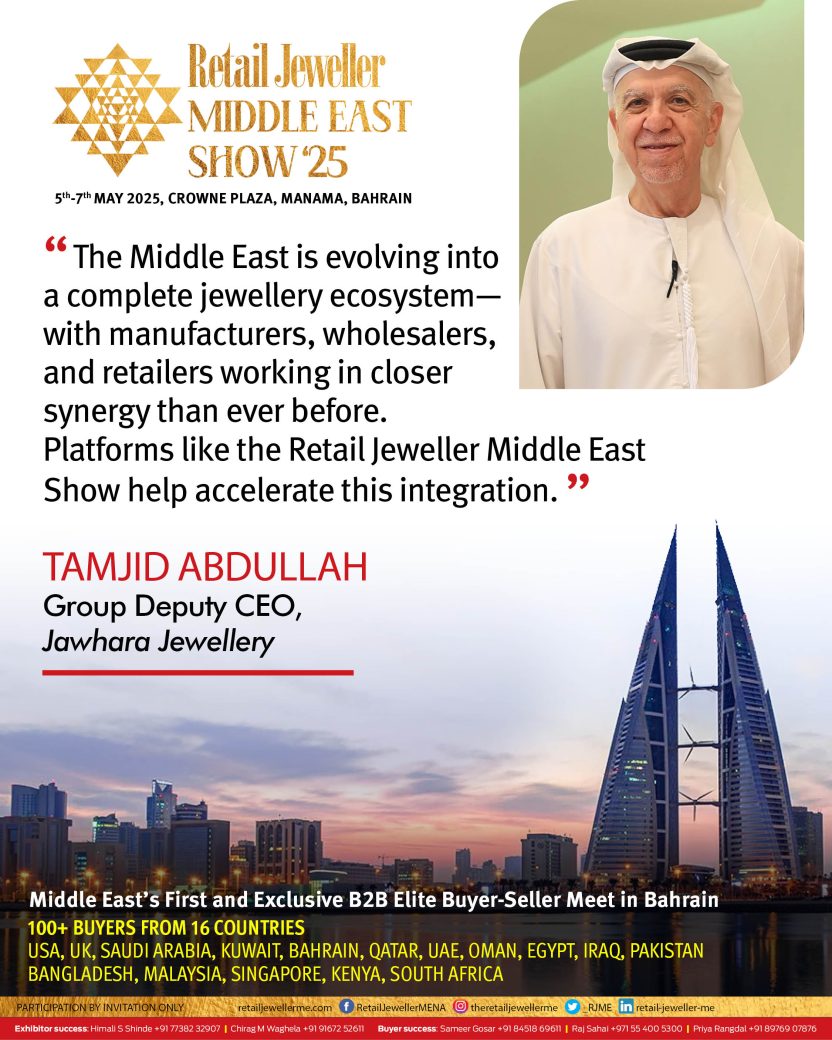 Tamjid Abdullah, Group Deputy CEO, Jawhara Jewellery, added, “The Middle East is evolving into a complete jewellery ecosystem—with manufacturers, wholesalers and retailers working in closer synergy than ever before. Platforms like the Retail Jeweller Middle East Show help accelerate this integration.”