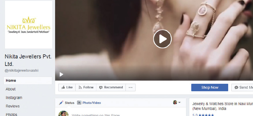Adding to the trend is Navi Mumbai-based fine jewellery brand, Nikita Jewellers Pvt. Ltd., with a commendable fan base of 9k+ people and a 5* rating on Facebook. They have devised a stratagem to feature their products in the most fashion savvy manner. The brand, a treasure trove for millennial-centric lightweight designs, have created an uber-chic video of their products. But what stands out in the melee of visual content is that the brand has posted this video as their FB cover rather than risk posting it on their timeline amongst multiple posts. (After a recent update, Facebook now allows accounts to upload video content as profile and cover image.) It’s impossible for visitors to their FB page to miss this video, adding considerably to clicks and views.